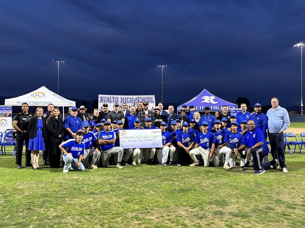 To further support student-athletes, Supervisor Baca also presented a $2,500 contribution to the Rialto High School baseball program to assist with equipment, training, and program needs.