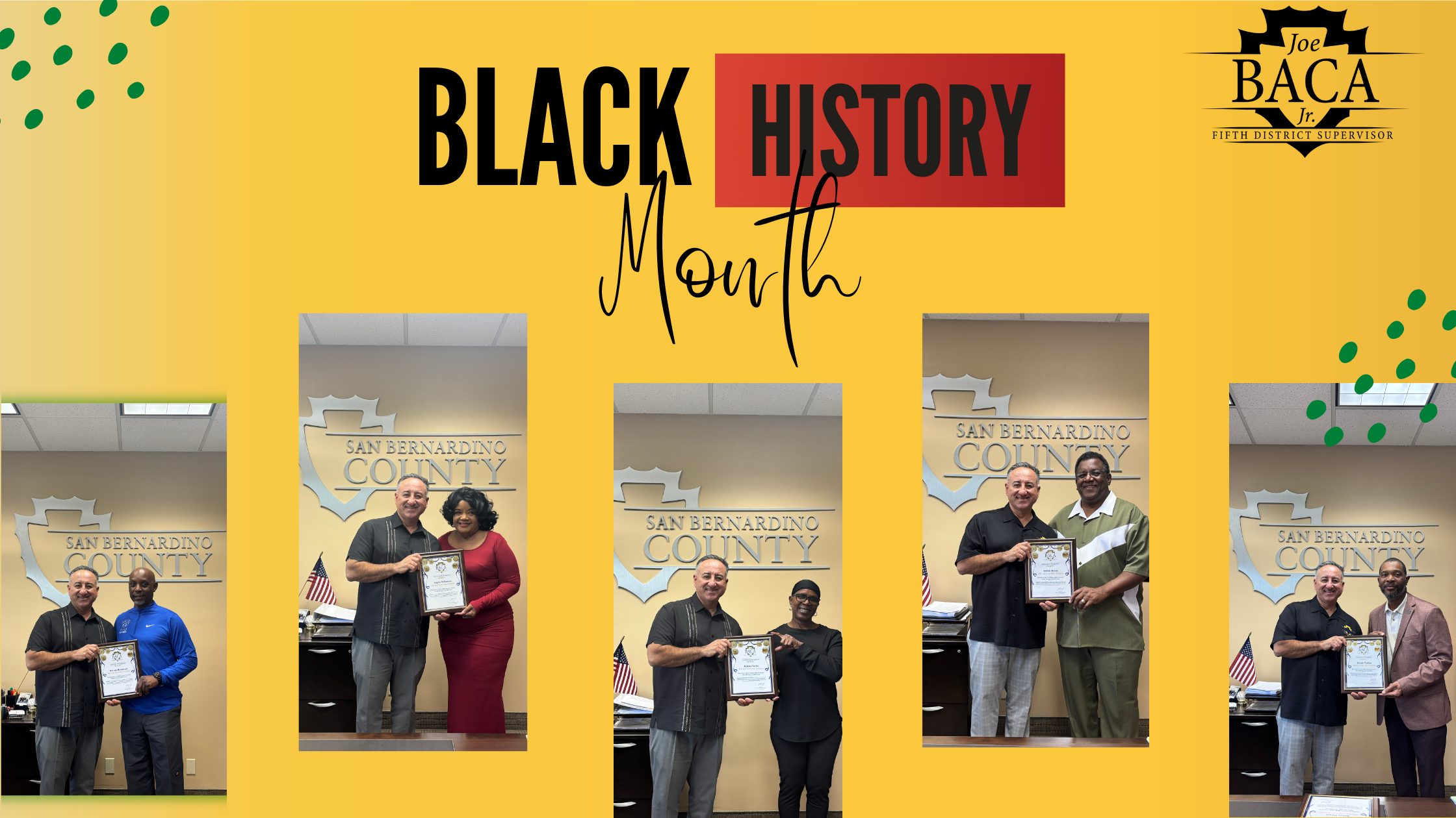 In recognition of Black History Month 2026, Vice Chair and Fifth District Supervisor Joe Baca, Jr. is proud to honor six outstanding community leaders whose dedication, service, and leadership have made a lasting impact throughout the Fifth District of San Bernardino County.